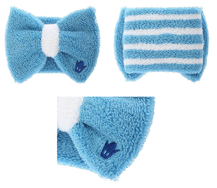フロンターレブルーをベースにした大きなリボン付きリストバンド。