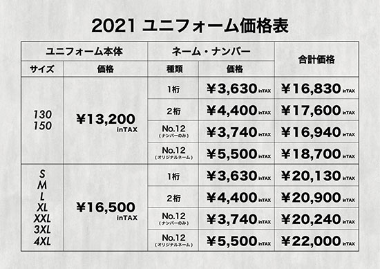 | 対象 | 2021年ユニフォームのネーム・ナンバー追加圧着を店頭にて受け付けをした方 |
