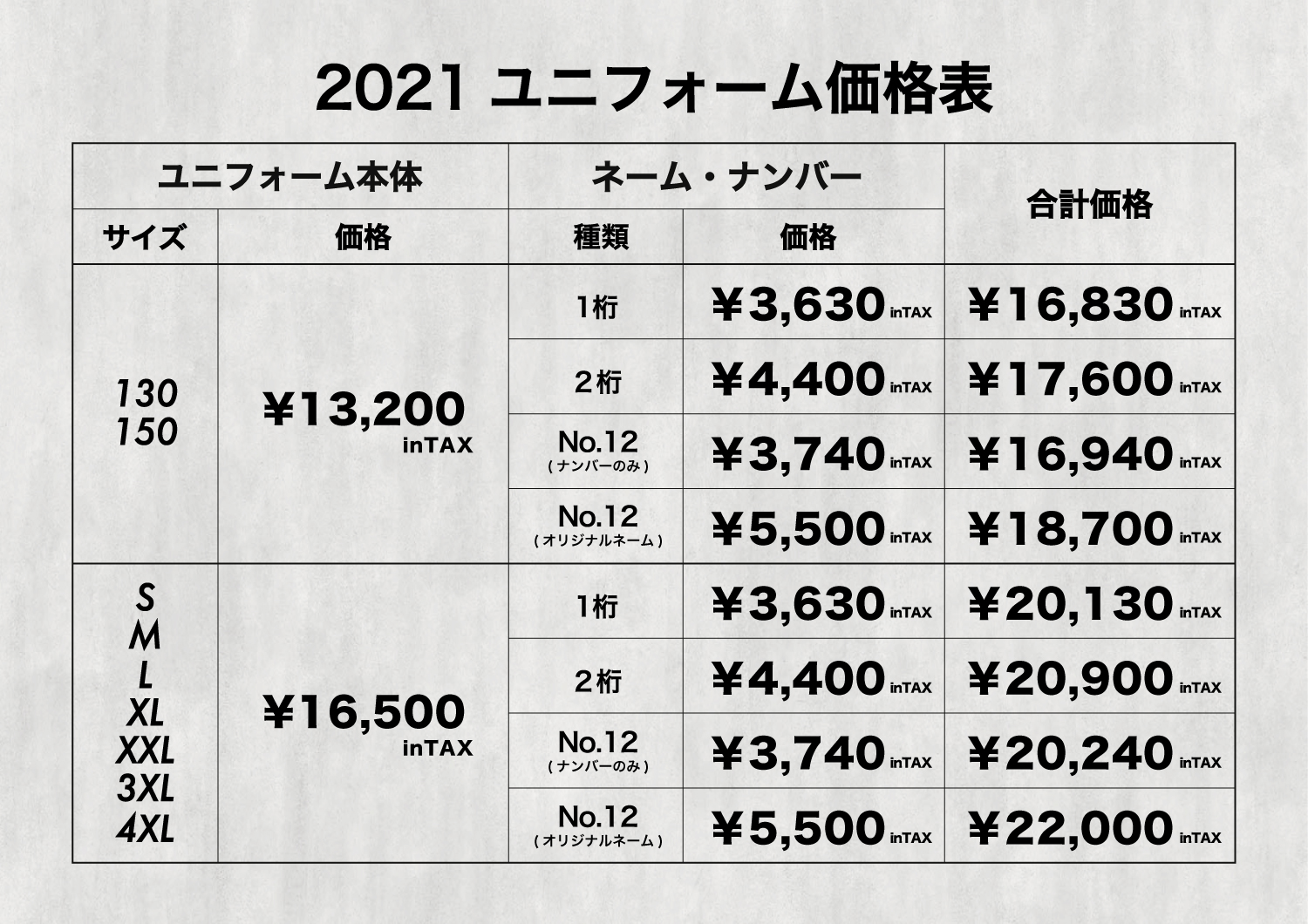 ネーム・ナンバー追加圧着加工受付とネーム・ナンバー付きユニフォーム販売開始のお知らせ