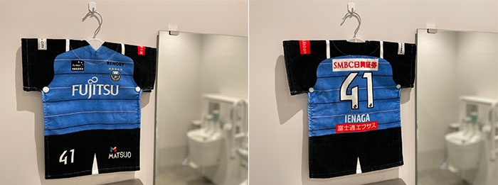 手洗いや食器洗いなどをした際に必需品のタオル。なんと!ユニフォーム型になって初登場。
