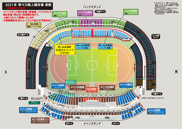 ※「ホームA指定 バック1階北」のエリアは立見での観戦は禁止となります。