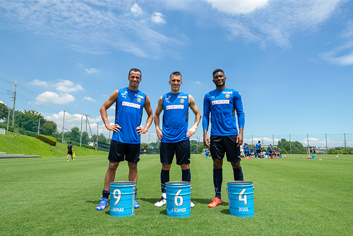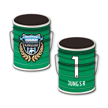 感染予防対策として選手が使用している各選手の専用ペール缶。選手達は飲料ボトル入れなどで使用していますが、フロンターレグッズ入れや、ちょっとした椅子代わりとしてオススメ!