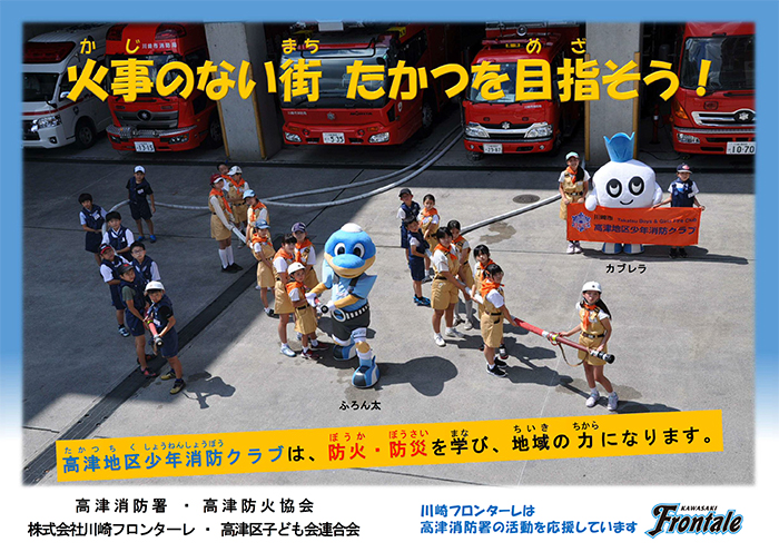 このたび、川崎フロンターレ様と高津地区少年消防クラブの御協力により、小学生向けの防火ポスターを制作いたしました。