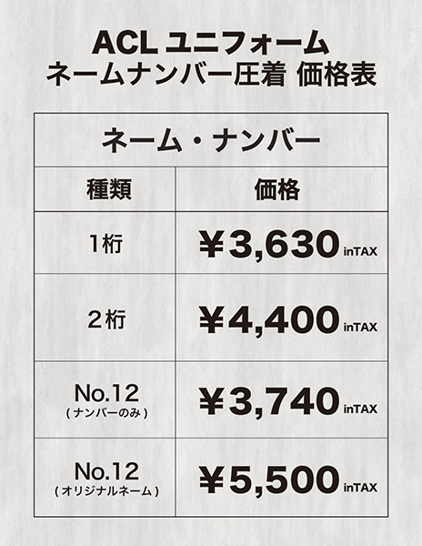 2021 ACL 1stユニフォームへの追加圧着加工受付のお知らせ