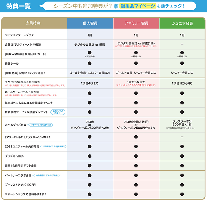 更新手続きのご案内を10月8日(金)よりご登録住所へ順次発送いたします。お手元に届きましたら、ご確認いただき更新手続きをお願いいたします。ぜひ2022シーズンもサポートをよろしくお願いいたします!