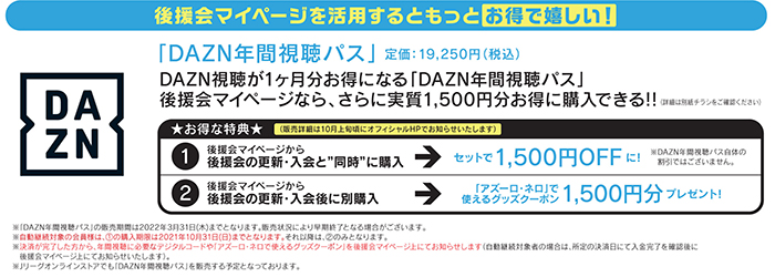 入会・更新と同時にDAZN年間パスが買える!!