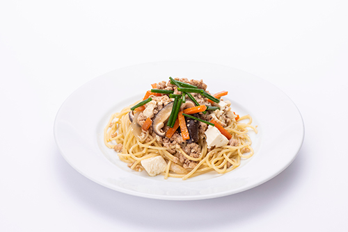 坂本九さんの奥様である柏木由紀子さんの得意の料理の一つである「炒り豆腐」。坂本九さんがお酒のおつまみで食べていたりと坂本家の伝統料理。そんな「炒り豆腐」をパスタにアレンジしました。 |