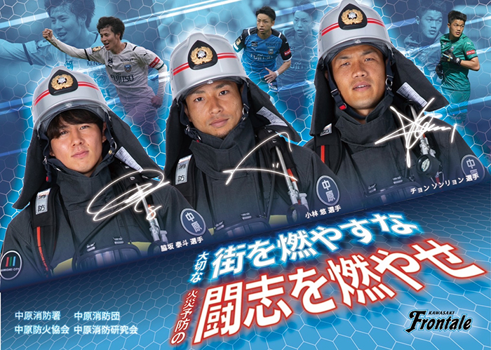 この度、中原消防署が制作する火災予防ポスターに当クラブのチョン ソンリョン選手・脇坂泰斗選手・小林悠選手の3選手が採用されましたのでお知らせいたします。
