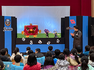 ◆4 人形劇団ひとみ座によるフロンターレキャラクター人形劇とスクールコーチの絵本読み聞かせ