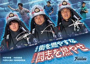 | 内容 | 昨年末に実施された「中村憲剛引退セレモニー」の際、40m級のケンゴ感謝懸垂幕で会場を沸かせた中原消防署ハシゴ車が再び登場!当日は中村憲剛FROが「1日消防署長」=「1日FRO(Fire station Relations Organizer)」として、実際にハシゴ車に搭乗し高所から秋の火災予防PRを呼びかけます!