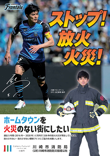 この度、川崎市消防局が制作する火災予防ポスターに当クラブの谷口彰悟選手が採用されましたのでお知らせいたします。