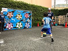 ロッテ・トッポくんを使ったドリブルアトラクションとキックターゲットを実施します。アトラクション参加者全員、フロンターレグッズが当たる抽選会にも参加が出来ます。