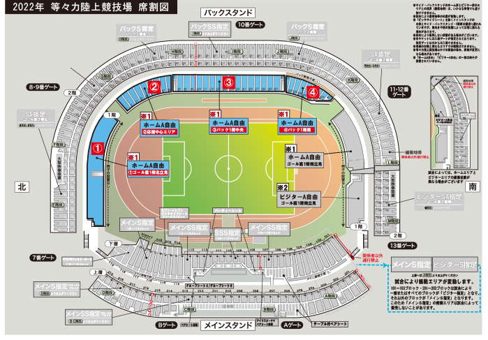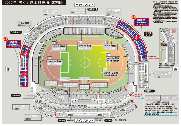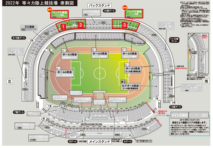 2022シーズンよりバックS自由とSG自由は指定席へと変更させていただきます。