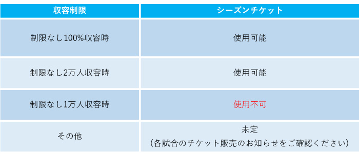 ※シーズンチケット「使用不可」の試合に誤ってご来場いただいた場合でもご入場はできません。