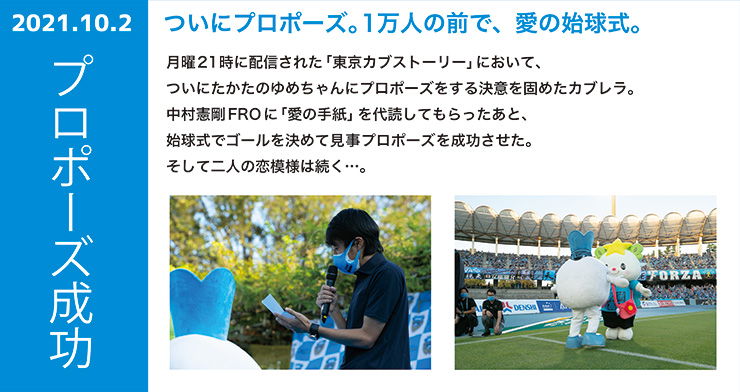 それが縁となり、「カブレラ」と「たかたのゆめちゃん」が2021年8月1日(日)にマスコット史上初の「交際宣言」をし、10月2日(土)にカブレラがプロポーズ。そして11月27日(土)、遂にゴールインパーティー実施の発表をいたしました。