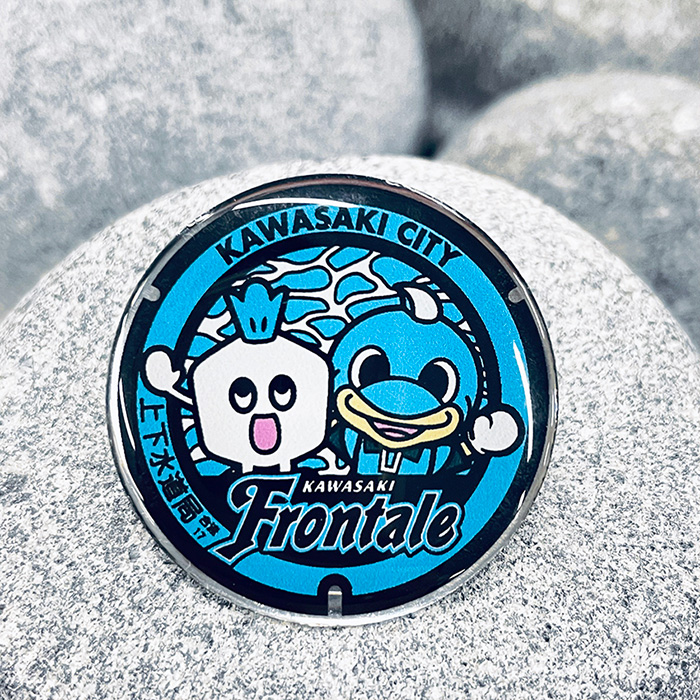 川崎フロンターレのマンホールをモチーフにしたピンバッジ。