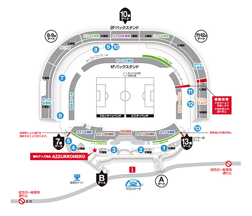 ◇座席配席、収容人数について ◎「全席指定席」にて運用いたします。 ◎シーズンチケット:「使用可能試合」となります。 ※全席指定席運用に伴い、「ホームA指定」、「ビジターA指定」で運用いたします。「ホームA自由」のシーズンチケットをお持ちの方は、「指定席運用時用」に設定している座席番号にてご観戦ください。 |