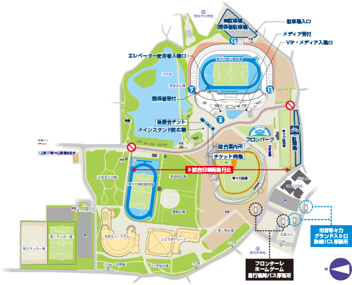 ※再入場について、各入場ゲートに設けられた「再入場ゲート」より、一時退場および再入場が可能となります。ただし、一時退場についてはキックオフ30分前までとなりますので、ご注意ください。