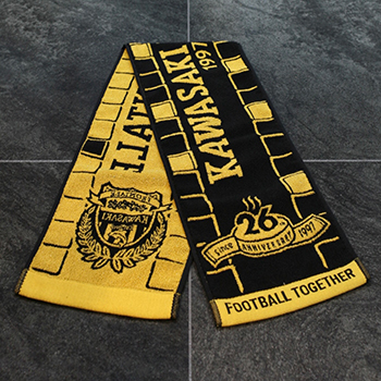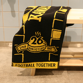 川崎フロンターレ26(フロ)周年を記念した金糸を使用したタオルマフラーを販売いたします。