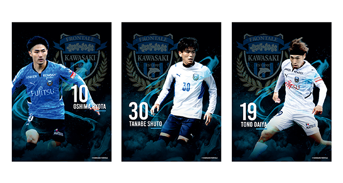 フロンターレグッズ2,500円(税込)以上お買い上げの先着200名様に、プレイヤーポスター(A3サイズ)をランダムでプレゼント! 静岡県に縁のある3選手(大島僚太選手、遠野大弥選手、田邉秀斗選手)をセレクトしました。なくなり次第終了となりますので、お早めに。