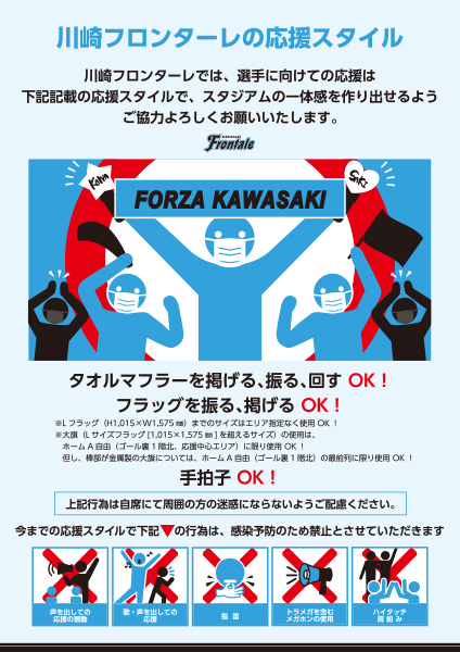 クラブとしてもこれまで以上に感染拡大防止の取り組みを実施していきますが、ファン・サポーターの皆様にも、Jリーグを安全に開催するためには、ご協力が不可欠となりますので、何卒よろしくお願いいたします。