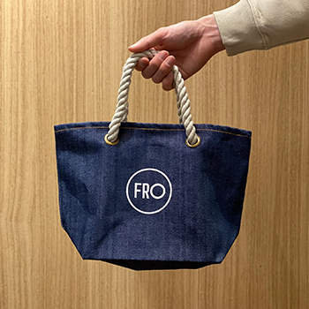 インディゴの落ち着いた色味がFROロゴをより引き立てます。