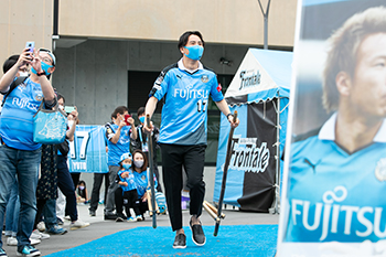 昨シーズンで現役を引退した大久保嘉人さんからサポーターへ向けた挨拶(キックオフ前スタジアム内)を行うほか、試合前にはフロンパークで本人とのフロンターレラストグッズ争奪じゃんけんコーナー、メッセージ書き込みコーナーなどを設置いたします。