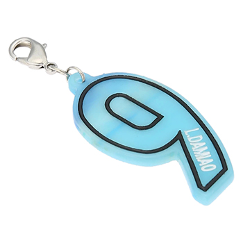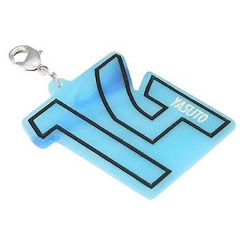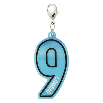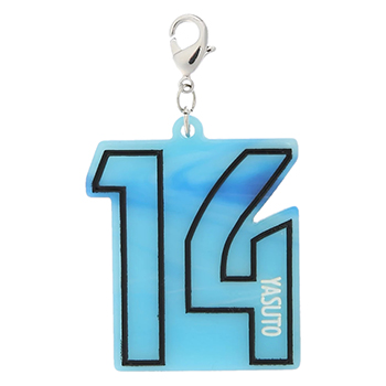 ネーム・ナンバーがデザインされたシンプルなアクリルチャームです。