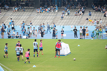 等々力のピッチでコーチたちと一緒にサッカーを楽しみましょう!!