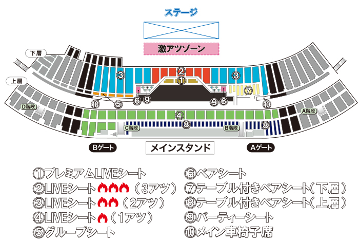 ※激アツLIVEの時間のみ、ステージとファン感LIVEシートの間に入場無料の「激アツゾーン」が出現しますので予めご了承ください。「激アツゾーン」の詳細はこちらをご確認ください。