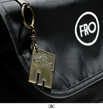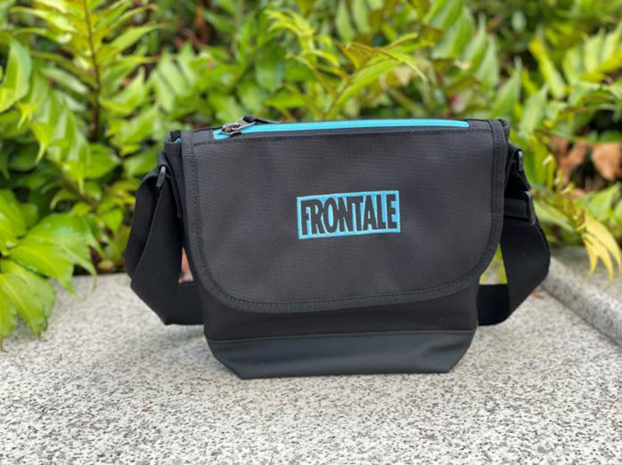 男女問わず使いやすいブラックボディにワンポイントとして刺繍でFRONTALEをデザイン。口部分はマグネットを採用し、簡単に開閉可能。また内側にもポケットが付いているので細かい荷物の仕分けもできます。
