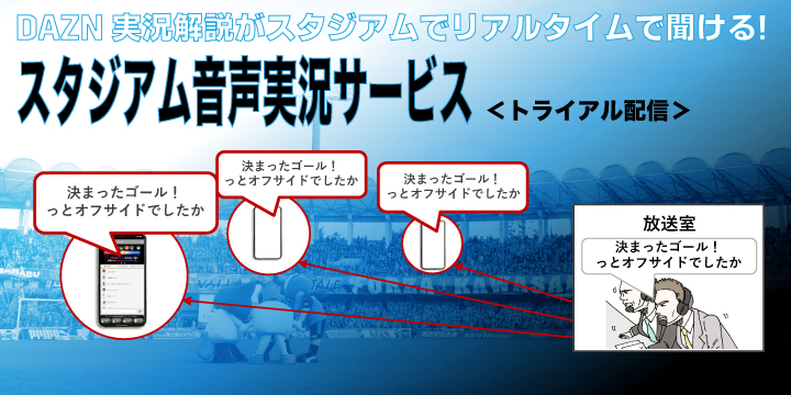 スタジアムでのサッカー観戦体験の向上を目的として、7月9日(土)ガンバ大阪戦において、等々力陸上競技場内で聴取できるDAZN音声実況配信サービスのトライアルを実施いたします。