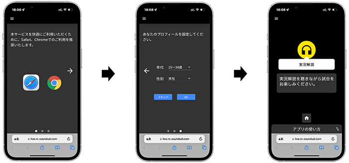 ◇STEP3:試合開始に合わせて実況解説がスタート