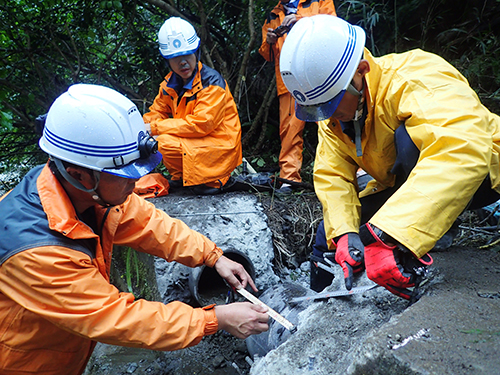 | 内容 | 勢いよく吹き出す水しぶきをものともせず、水道管からの漏水をぴたりと止めます。川崎市上下水道局が誇る技能集団「スペシャリスト」たちによる、迫力ある漏水修理の技をとくとご覧あれ!