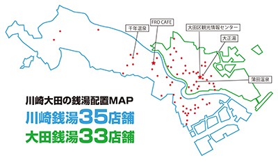 風呂上がりには欠かせないコーヒー牛乳からインスピレーションを得たカラーを採用。さらに川崎市の花であるつつじをベースに温泉マークや、ゆ(湯)、26、などで構成されたオリジナルグラフィックを大胆に配置。
