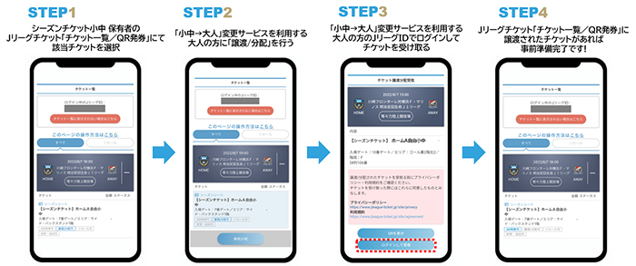 譲渡されたシーズンチケット小中をご自身のJリーグIDでログインし、受け取った状態で窓口にお越しください。