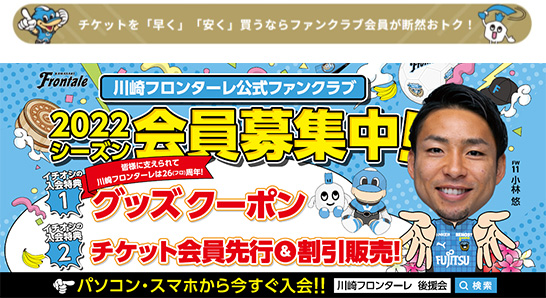 観戦チケットを“早く、安く購入できる”川崎フロンターレ後援会入会はこちら