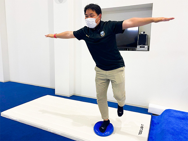 バランスボール上にてタイタニックポーズを設定した時間キープできたらクリア。クリアした方には景品を進呈します。 ※安全マットの上にて実施するため、参加時は下足 |