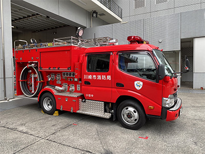 ポンプ車・小型動力ポンプ積載車(消防団車両) 13:00~17:00 ※災害時など緊急出動が必要な際には、展示できない車両があります。 |