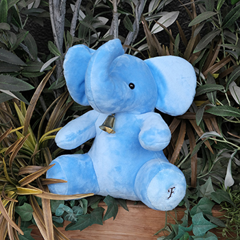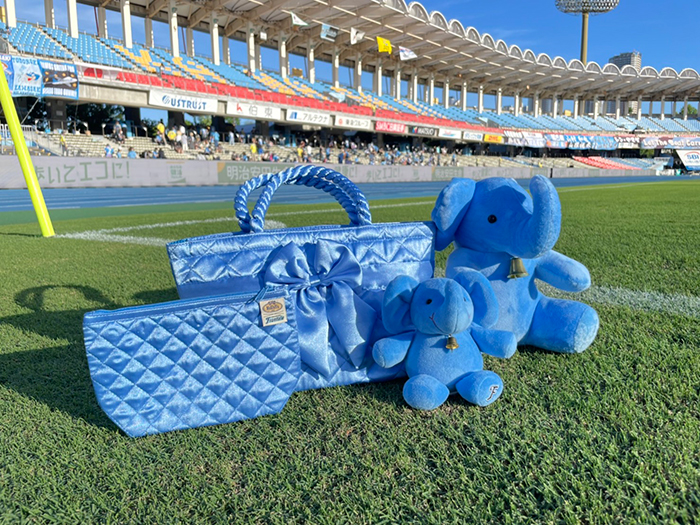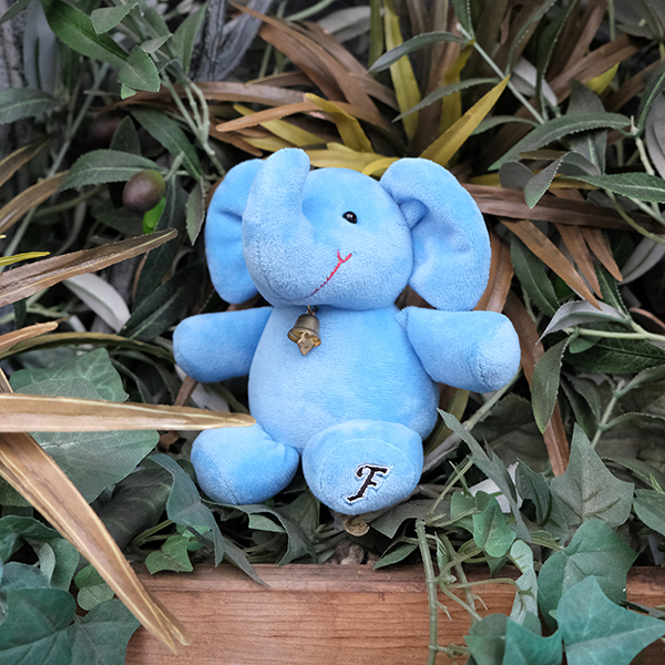 象の国としても知られるタイでは象は敬うべき動物とされており、とても大切にされています。フロンターレカラーに合わせたブルーの象ぬいぐるみは足裏に“F”を刺繍加工しました。手のひらサイズなので机の上や玄関などに飾りやすいぬいぐるみです。