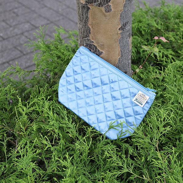 フロンターレブルーのマルチポーチ。収納量に合わせてマチを広げたり、折りたたんだりして使用できます。ちょっとした小物ポーチや、化粧ポーチとしてオススメ!! NaRaYaとのコラボ織ネーム付き。