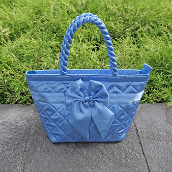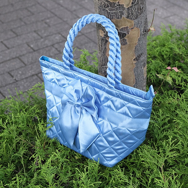 ツイストのハンドルがオシャレなサテントートバッグ。舟型タイプで開口部が広いので、中に入っているものが見やすく出し入れが簡単なのがポイントです。ちょっと気分を上げたいな!という時に鮮やかなフロンターレブルーのトートバッグでランチなどを楽しむのはいかがでしょうか!?