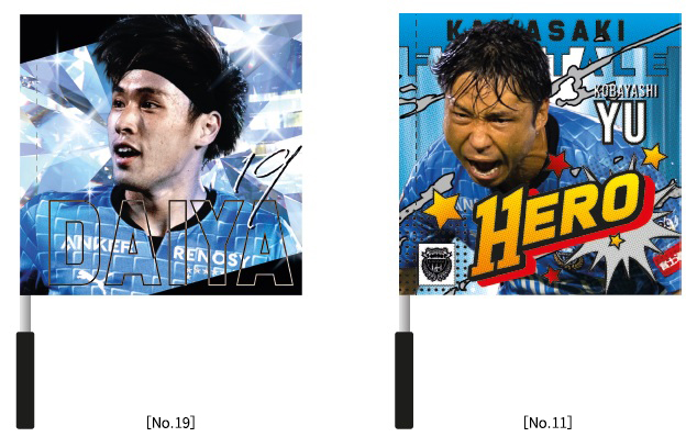 応援グッズの定番であるフラッグで声援の代わりに選手、クラブの後押しを!! 選手をイメージしたプレイヤーデザインに加え、アカデミーデザインも初ラインナップ。アカデミーデザインはU-18ホームゲーム時などにコーナーフラッグとして使用されているデザインをイメージしました!