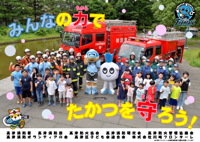消防署・地域防災の要である消防団・高津区内の子どもたちや企業等が一体となり、みんなで高津区を守り災害をなくすことを目的として制作いたしました。