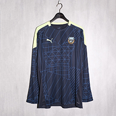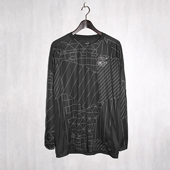 前身頃とラグランスリーブにグラフィックプリントを配したFUSSBALL HYBRID長袖Tシャツにエンブレムを入れてフロンターレオリジナルデザインとして発売!! 通気性が高く軽やかな風合いにはDRYCELL機能を備えており、フットサルやランニングで活躍すること間違いなし。