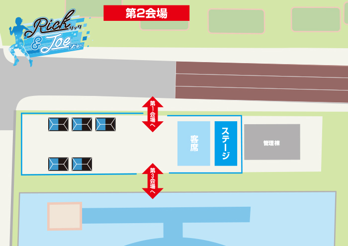 当日Rick&Joeイベントへの参加は、ブース混雑緩和のため各ブースでのチケット発券は行わず、補助グラウンド横【多目的広場】に設置したチケット販売ブースにて5枚のアトラクションチケットが1綴りになった「アトラクションチケットセット」を500円にて8:30から事前販売します。