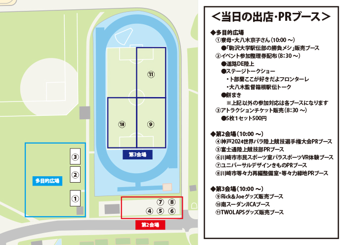| 持ち物 | 第3会場の補助グラウンド内にはヒール、革靴での入場はできません。 スポーツシューズ、スニーカーでご入場をお願いいたします。 |