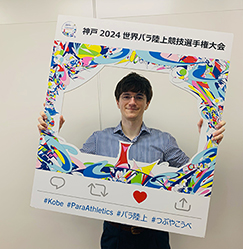 ブレードと呼ばれるカーボン素材の競技用義足を実際に装着しトラックを走ってみよう! この日イベントに参加している高桑早生選手も体験コーナーに顔を出しますよ!