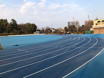 今回の会場はスタジアム前園内道路を多摩川方面に行き、釣り堀の向かい側にある400mトラック完備の補助グラウンドがメインとなります。