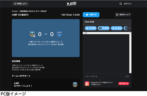 今シーズンもフロンターレアカデミーの選手たちの戦いぶりをタイムリーに皆さんにお届けするため、スポーツライブエンターテイメントアプリ「Player!」にて試合速報を実施します。